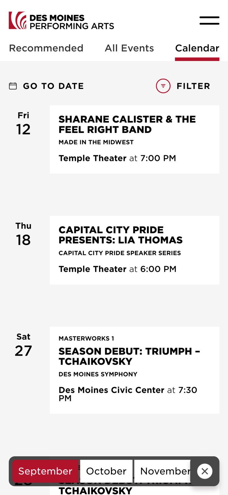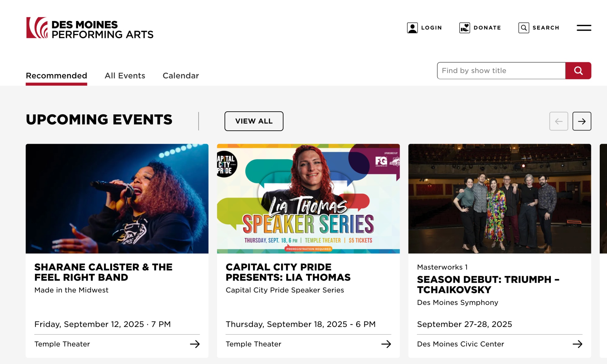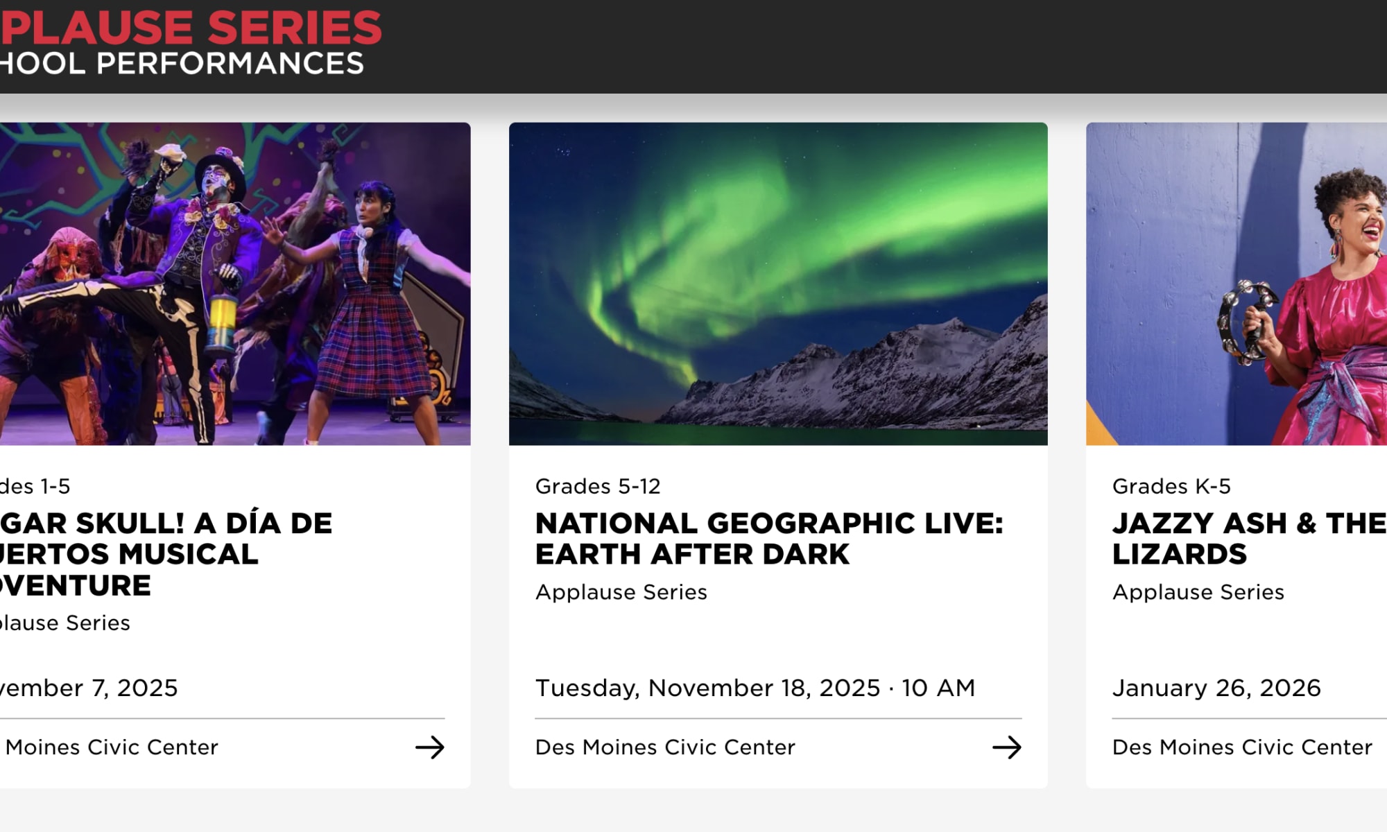 Durch die Erstellung dieser maßgeschneiderten, in Tessitura integrierten Pfade haben wir der DMPA geholfen, den Verwaltungsaufwand erheblich zu reduzieren und gleichzeitig eine bequemere Erfahrung für ihre Bildungspartner zu bieten. Das Ergebnis ist eine digitale Präsenz, die die Position der DMPA als Iowas führende Organisation für darstellende Künste widerspiegelt, mit einer Technologie, die sowohl ihre künstlerische Vision als auch ihren Bildungsauftrag unterstützt.